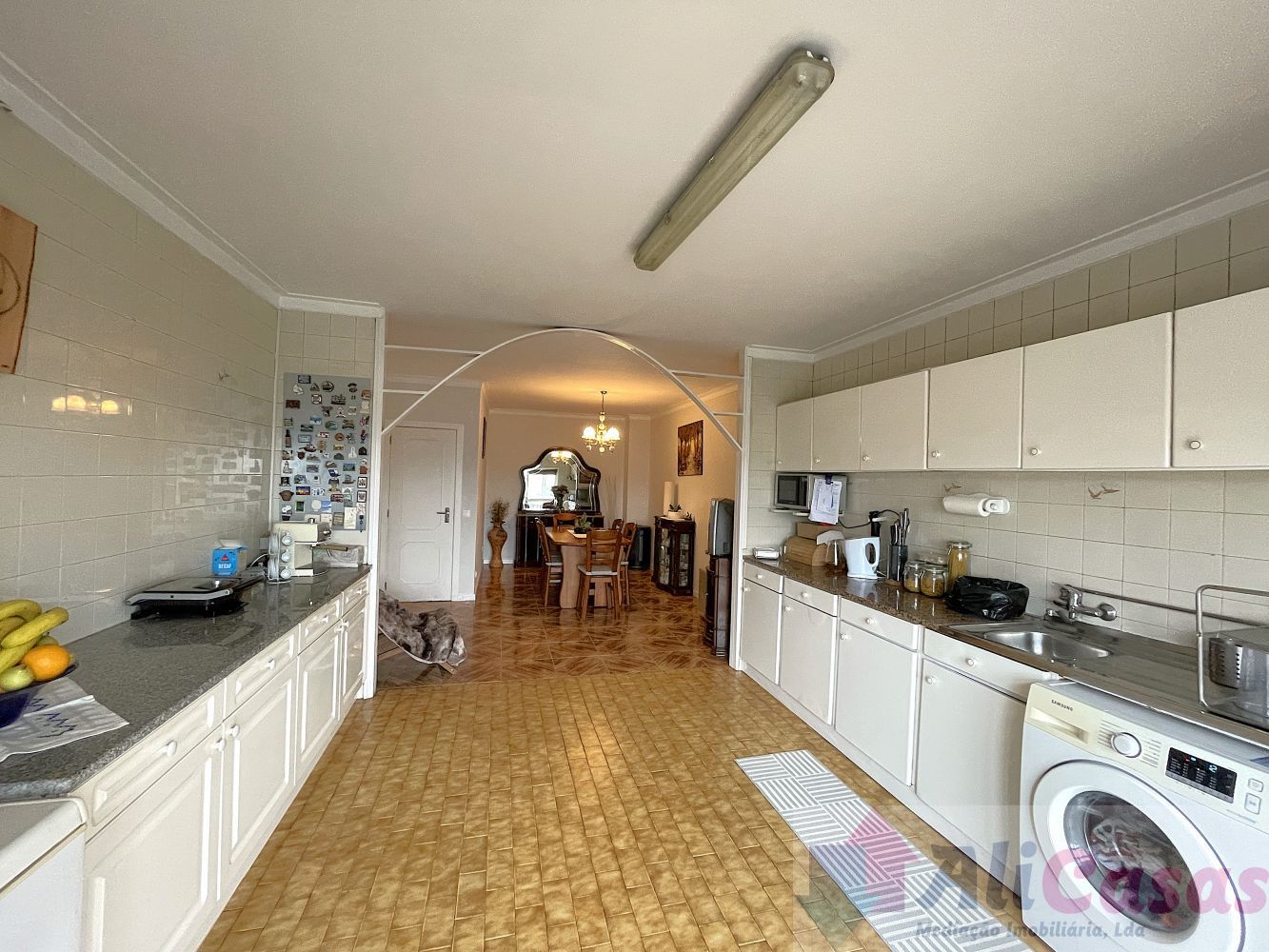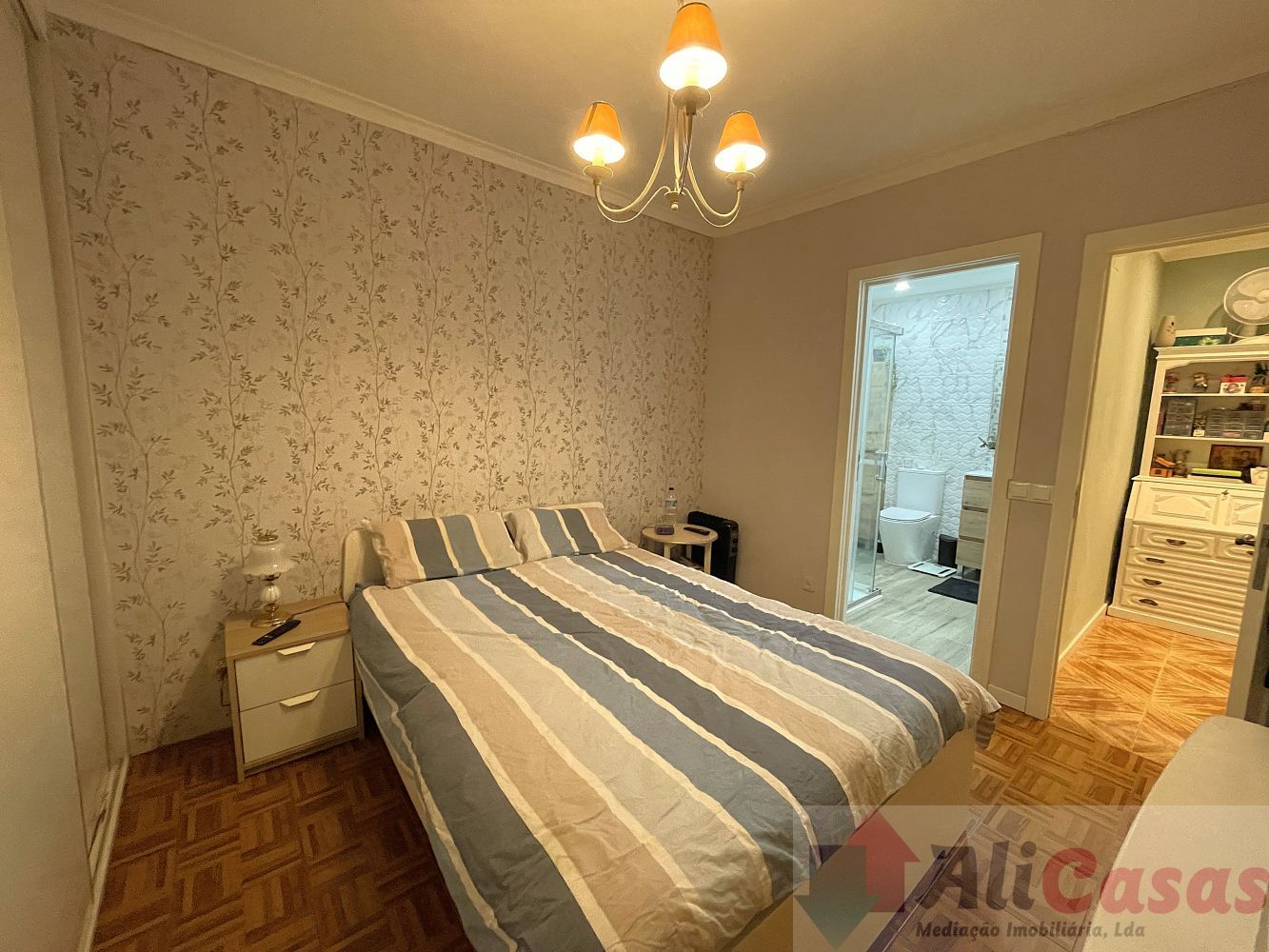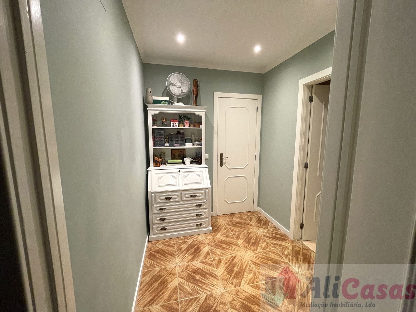Despensa, banho completo com duche, 2 quartos interiores com roupeiros embutidos, sendo um deles uma suite com banho privativo com duche. Os banhos e quartos estão totalmente remodelados.
