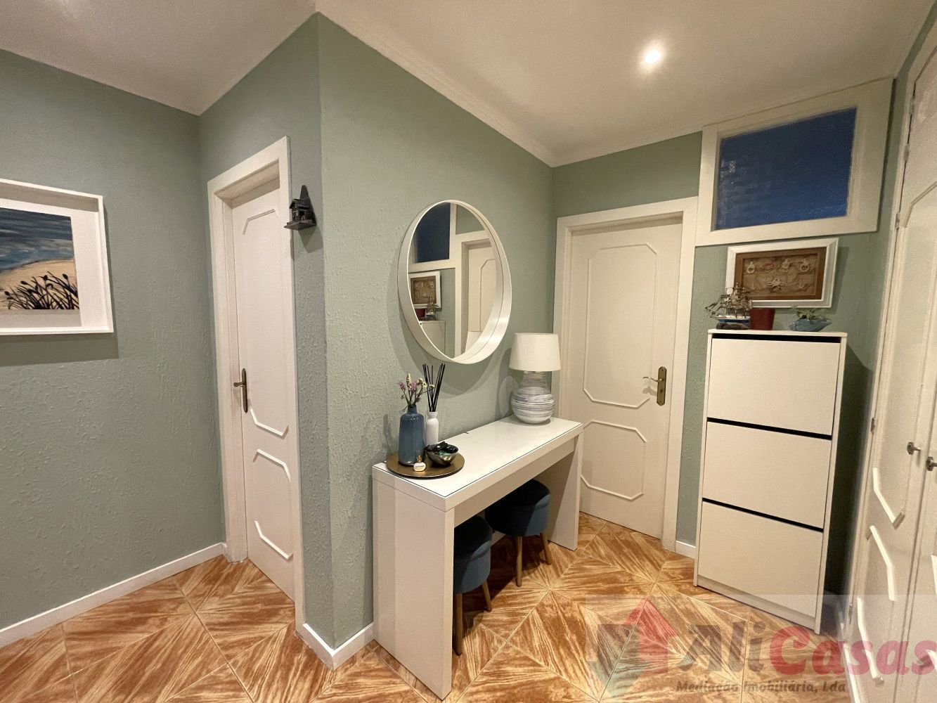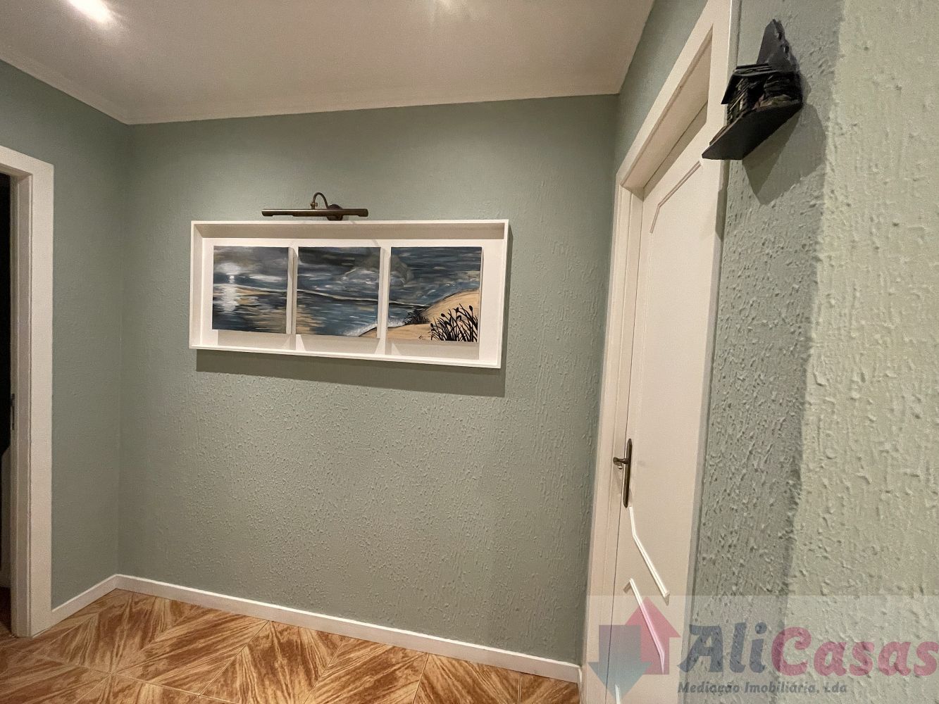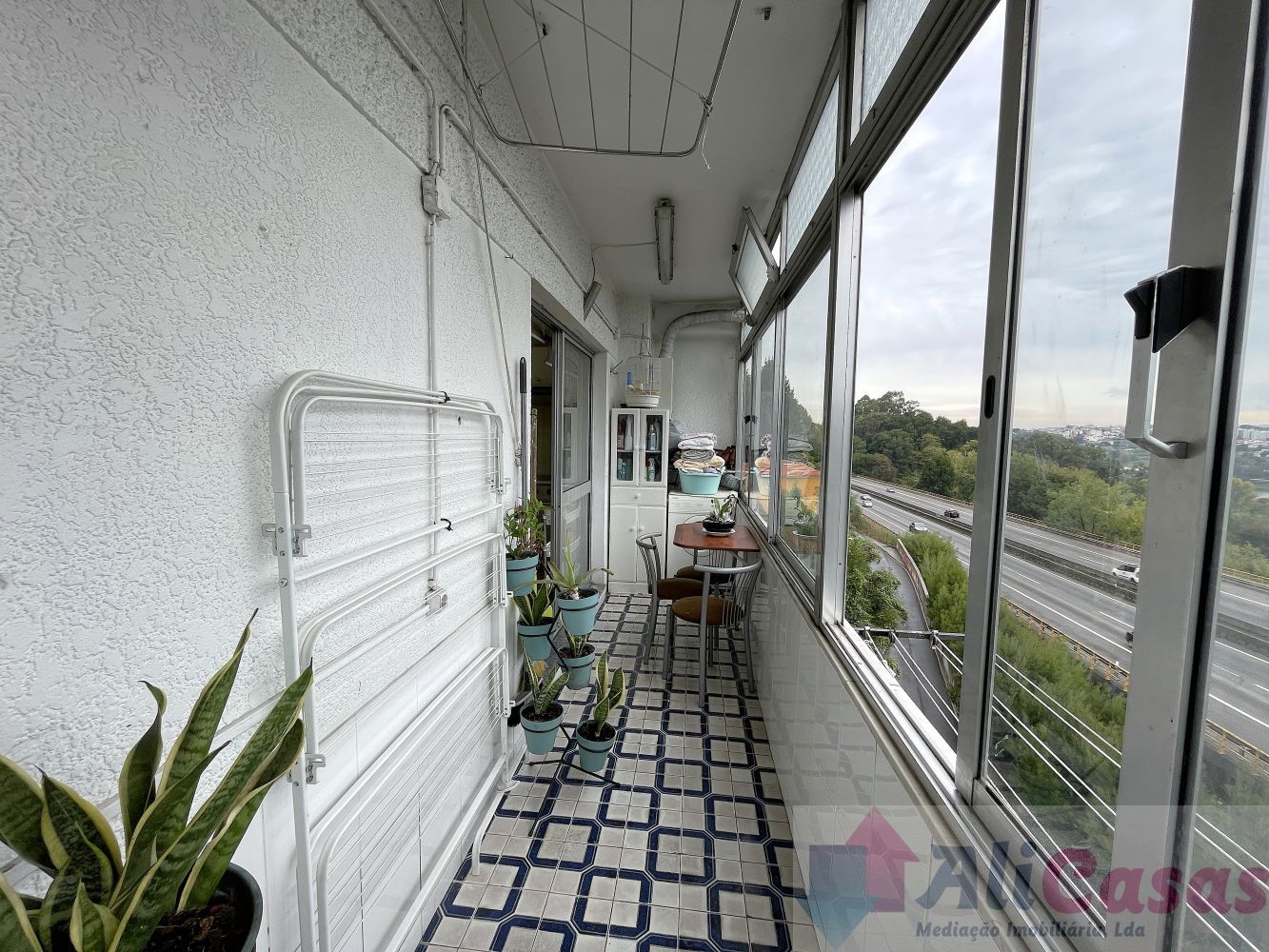 Piso em tijoleira, tetos estucados com ponto de luz. Boas áreas e vista desafogada.