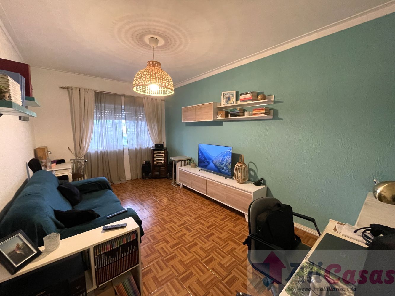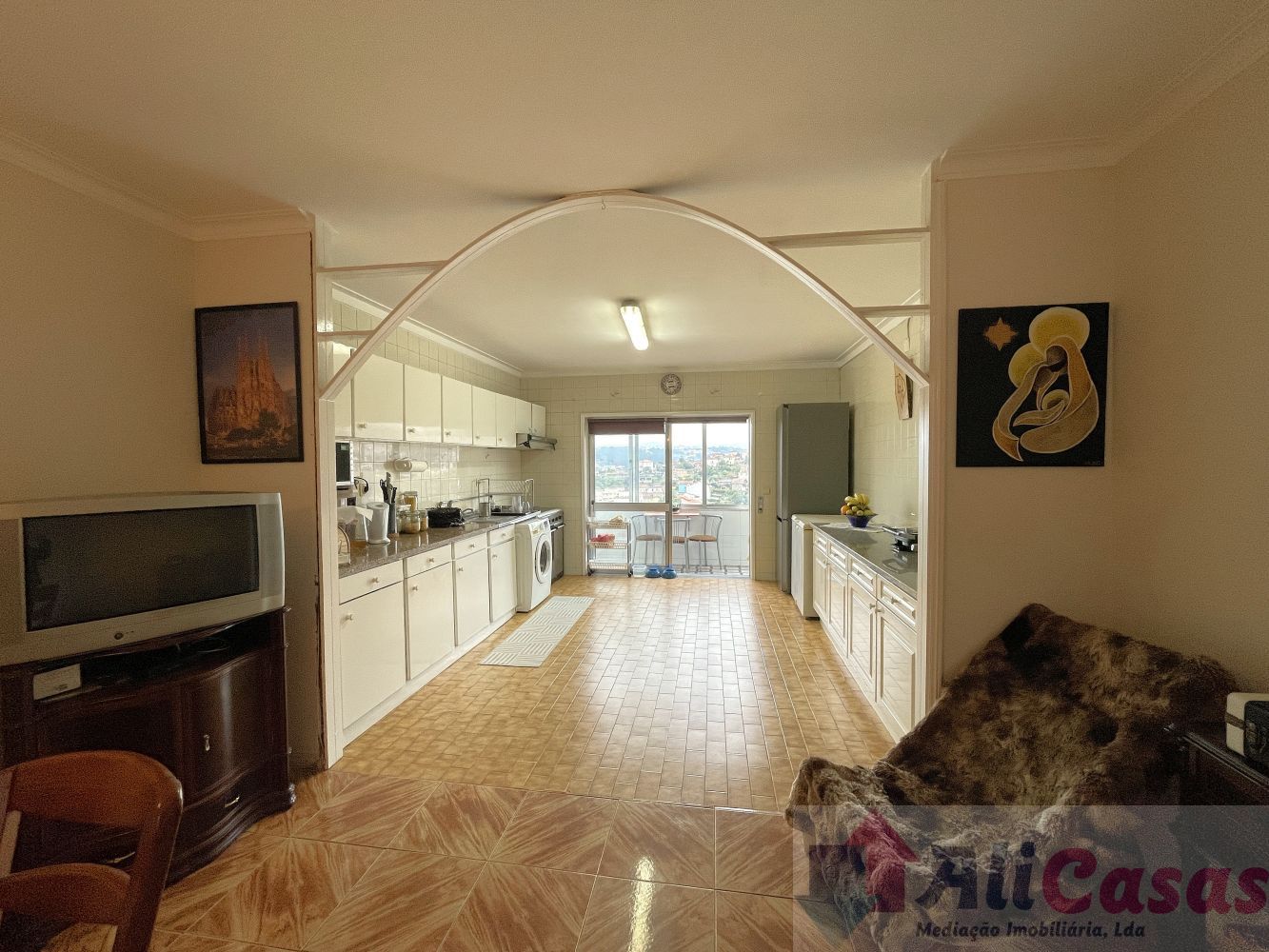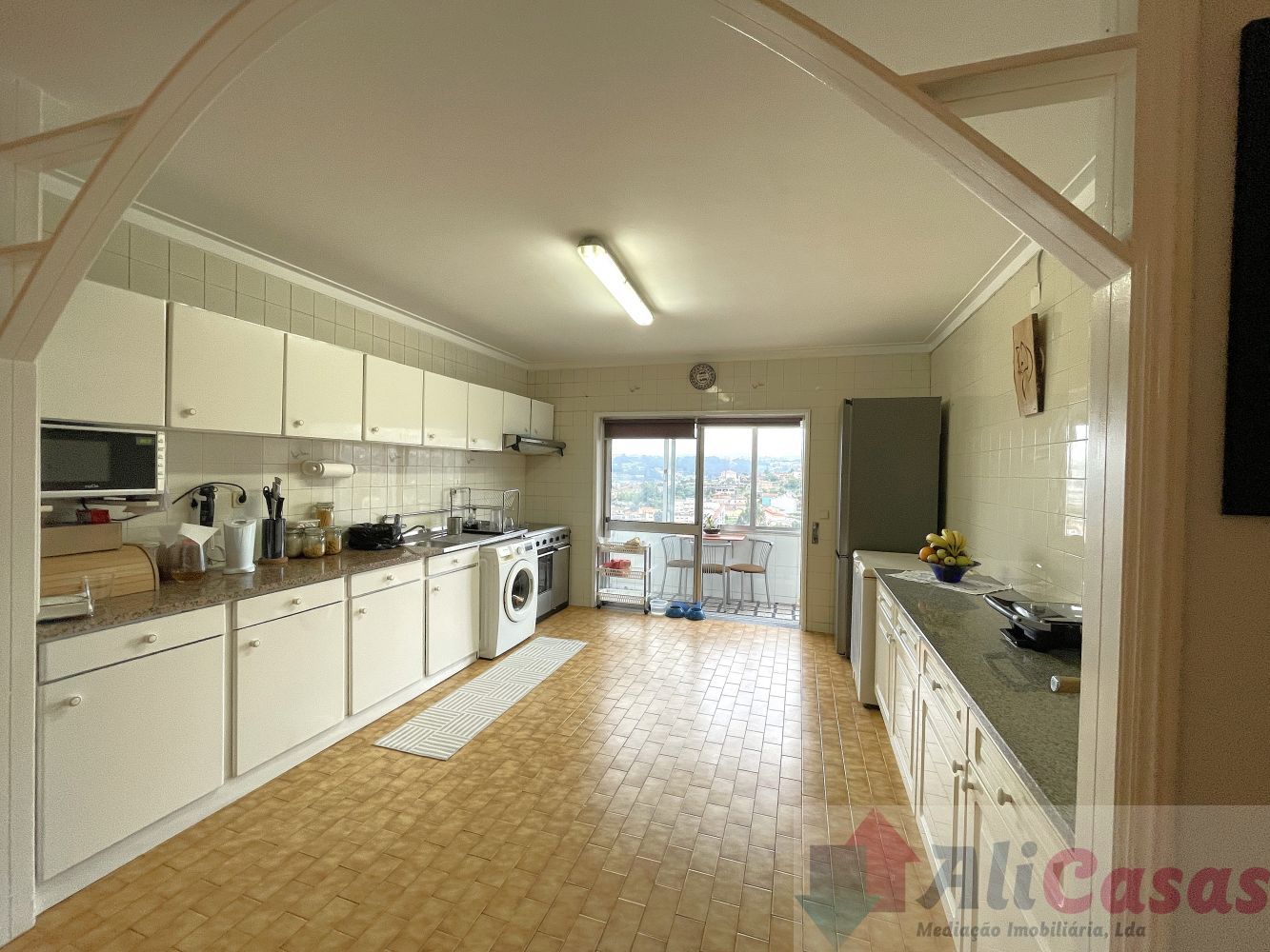 Piso em tijoleira, tetos estucados com ponto de luz. Boas áreas e vista desafogada.