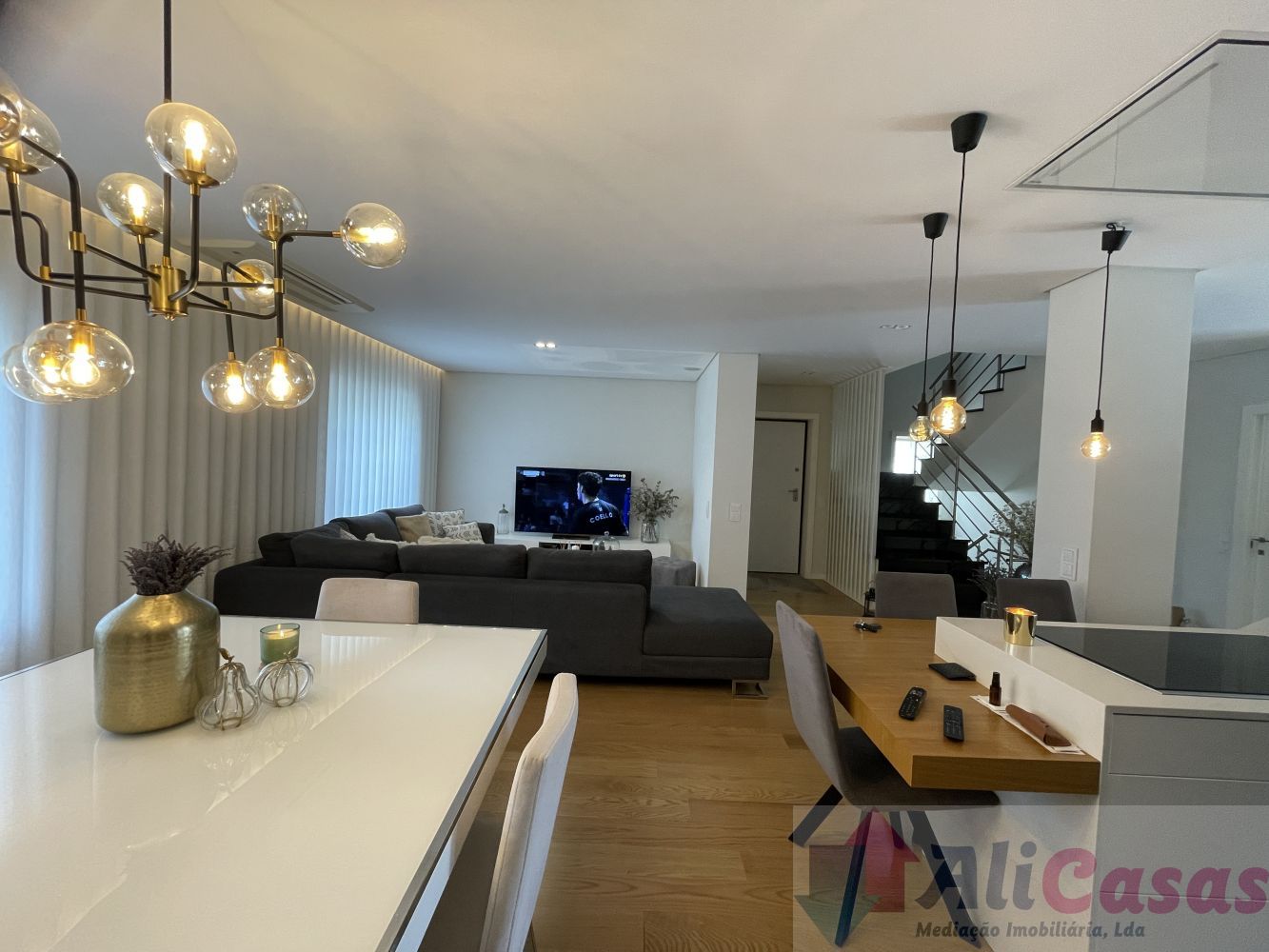 Fabulosa Moradia C/3 Frts Composta por Cave, R/Ch, 1º andar, aproveitamento de sótão e anexos. R/Ch composto por hall de entrada, sala muito ampla e cozinha em open space, quarto/escritório, banho de serviço. Cozinha totalmente equipada com frigorifico e arca vertical, ambos embutidos da marca Liebherr, Forno eletrico com função a vapor, forno microondas com gaveta para aquecimento de alimentos, máquina de lavar louça e placa de indução, tudo encastrado e da marca Neff. Exaustor de teto com comando. Ilha com 5 metros com muita arrumação, várias gavetas e gavetões, tampo em silestone, torneira da Groe. No primeiro andar encontra uma fabulosa suite com closet e banho completo com duche e banheira de chão, 2 quartos com roupeiro, um deles transformado em quarto de vestir, banho completo com duche. No aproveitamento de sótão, encontra um salão multifunções amplo, com armário ao fundo para arrumação. Na cave encontra espaço amplo, destinado a garagem, mas utilizado como ginásio, banho de serviço e quarto/escritório com luz direta. Porta de acesso ao páteo posterior. Anexo composto por garagem para 2 carros, cozinha regional com forno e sala para refeições, lavandaria. Conta ainda com telheiro lateral ideal para colocação de carros. A Moradia encontra-se toda revestida a capoto, tem caixilharia de alúmio com vicro duplo, estores eletricos, tectos falsos com focos embutidos, ar condicionado em toda a casa. Pisos em flutuante de madeira, exceto banhos e cave, escadarias em granito preto. Esta moradia encontra-se perfeitamente atualizada e pronta a habitar! Aproveite esta oportunidade!